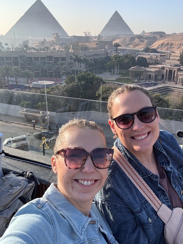 Heading to the pyramids and the Grand Egyptian Museum today. This is the view from our breakfast table this morning.